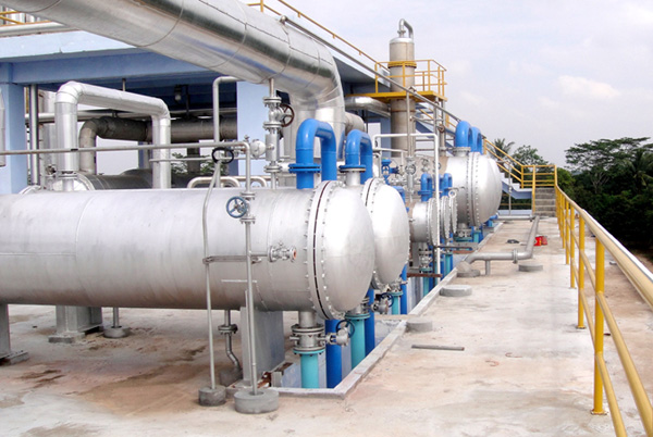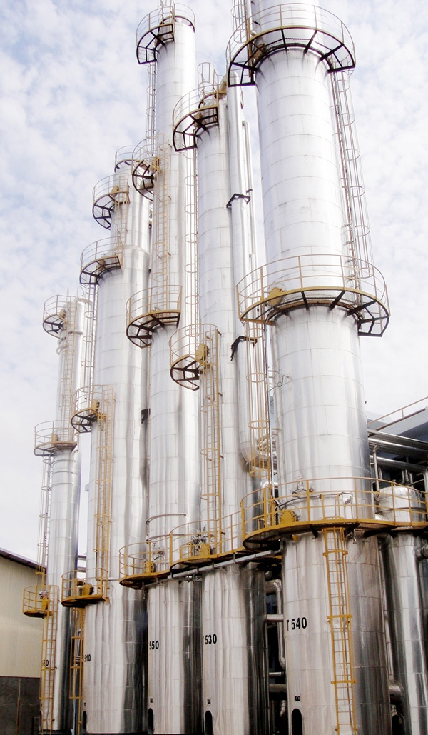 印度尼西亞酒精工業有限公司(50000噸/年優級酒精和30000噸無水酒精裝置)項目的特級酒精生產蒸餾裝置是國內第一套進口的差壓精餾技術。其所有的塔設備、換熱設備、儲存設備以及工藝管道等均由我公司制作、安裝。